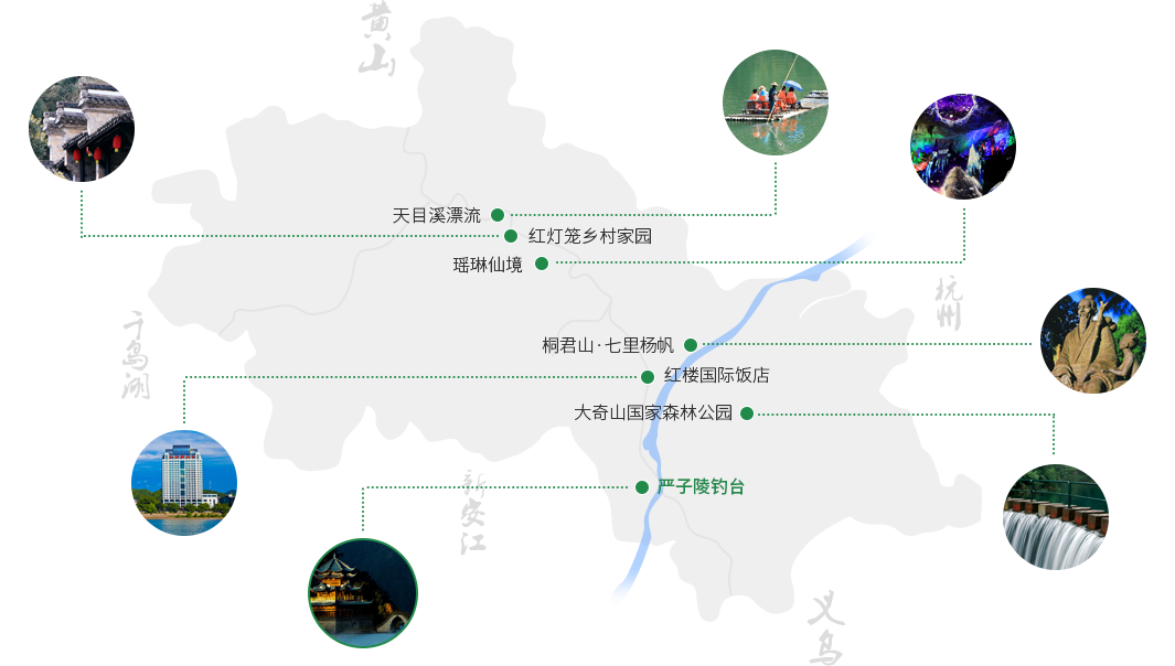 桐廬,地處國家級風景名勝區(qū)“富春江—新安江—千島湖”的中心地段。境內(nèi),山水旅游資源得天獨厚,山青水秀,洞奇石美,古跡悠悠,勝跡處處?!盀t灑桐廬郡”、“流水帶花香”便是流傳了千年的吟詠。桐廬,處處是山水詩,寸寸是寫意畫, 從1600多年前的南北朝到清末,就有1000多名詩人到此盤桓后留下過3000多首詩文佳篇。
